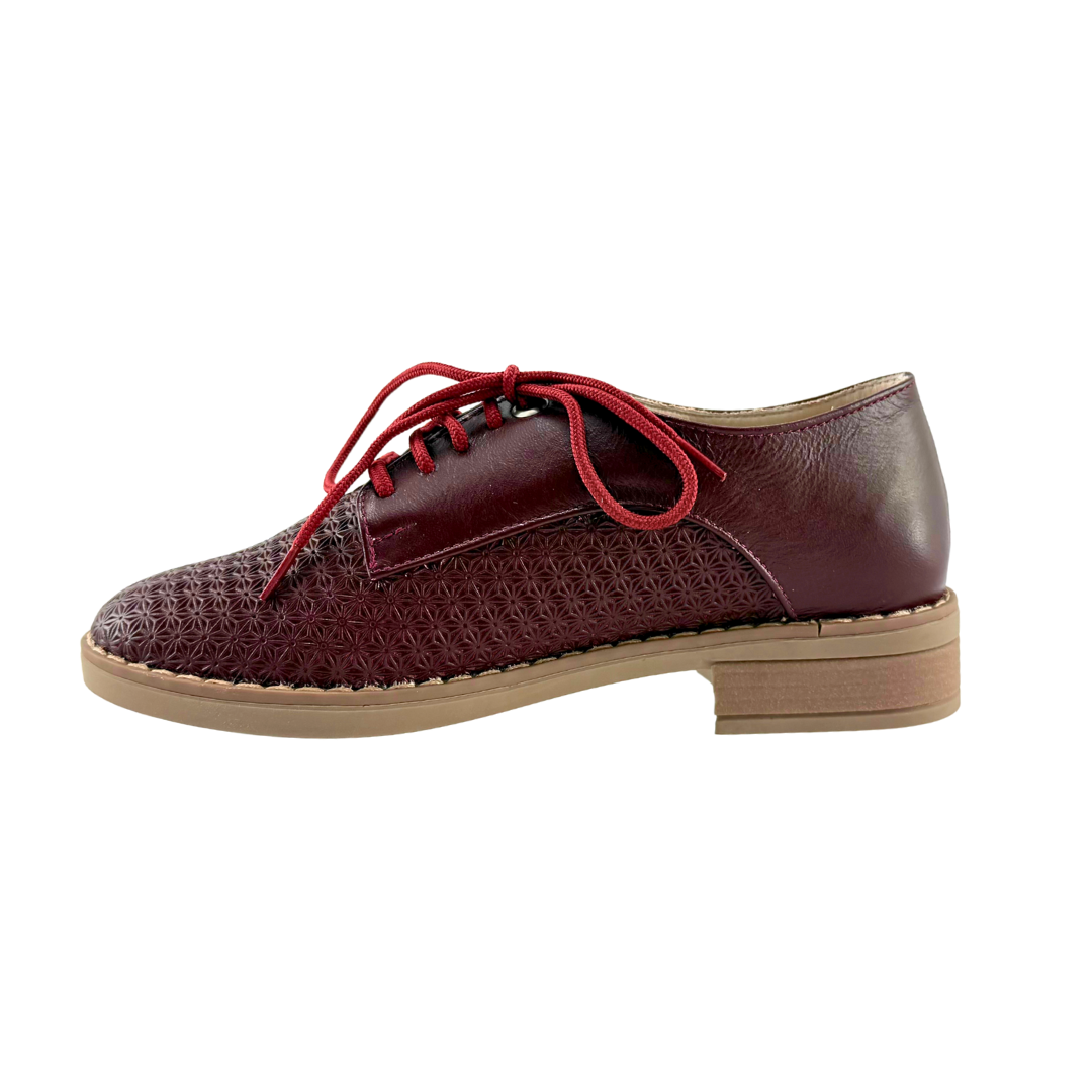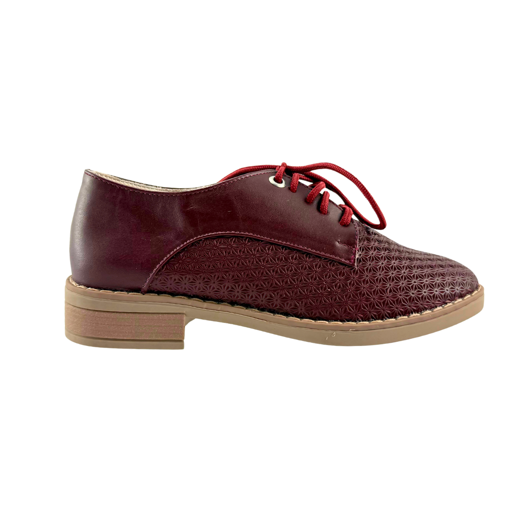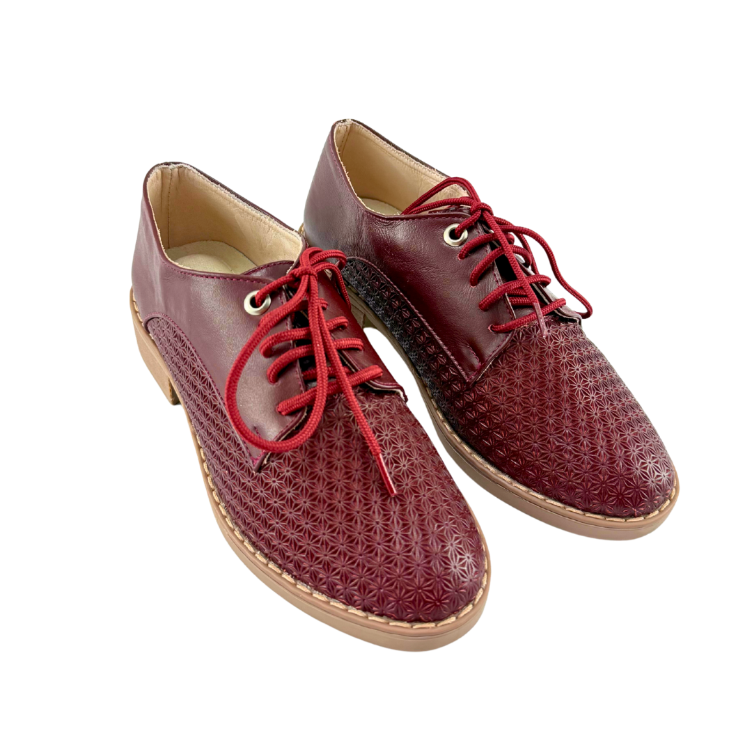 Bolichero Mujer Versilia Brigde elaborado en cuero grabado y cordones ajustables. Ref. 0007165 Disponible en color Vinotinto.