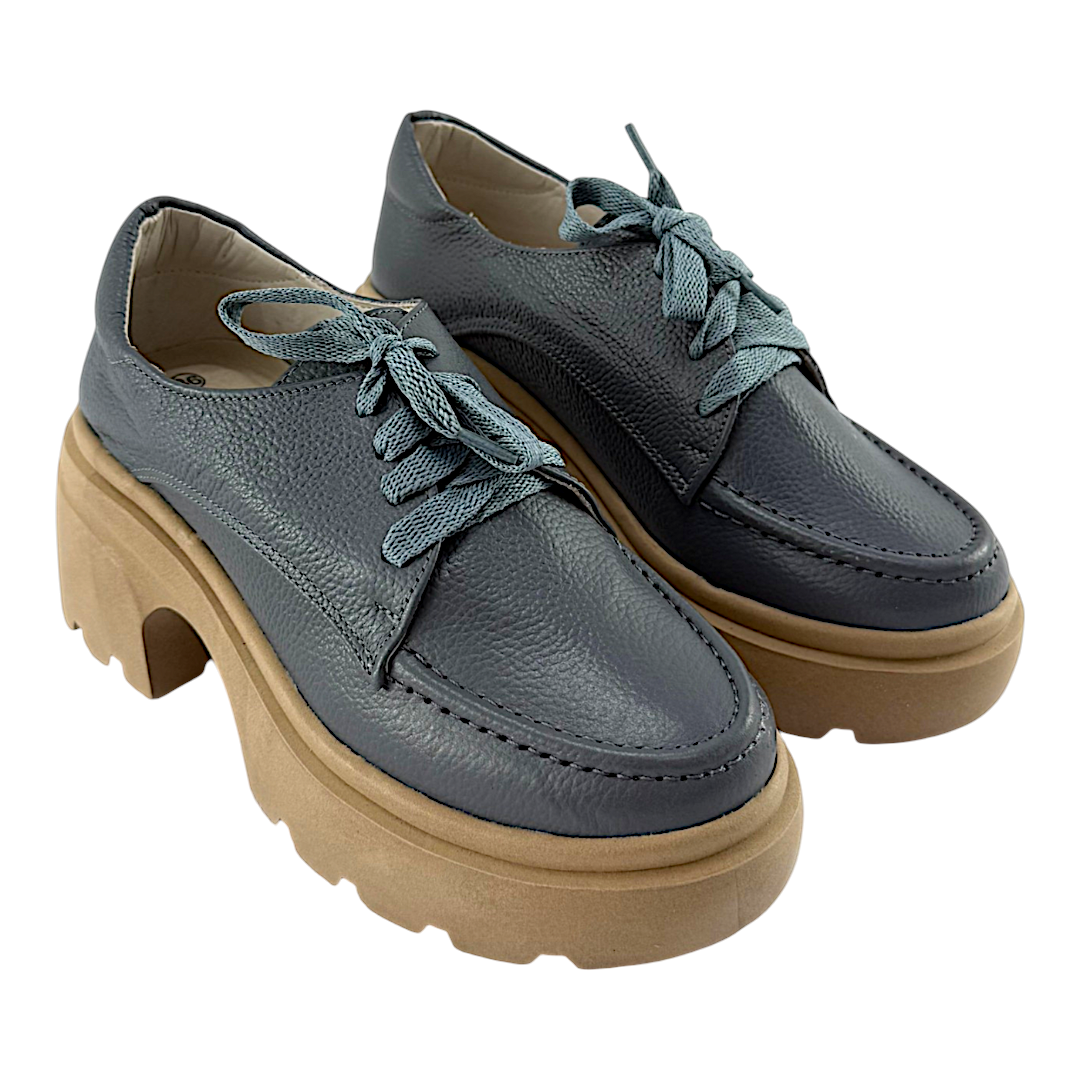 Bolichero Mujer Versilia Carla elaborado en cuero, suela alta y ergonómica, interior forrado y plantillas suaves, cordones ajustables. 0007569 Disponible en color Gris.