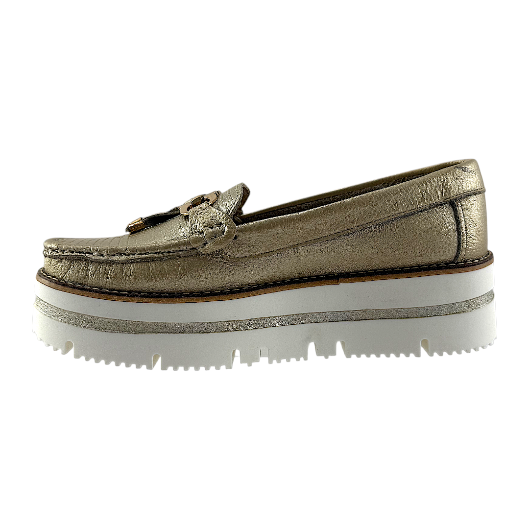 Mocasín femenino Versilia Martha que combina comodidad y elegancia. Diseño clásico con acabados refinados, ideal para uso diario o casual. Ref. 003782 Disponible en color Dorado