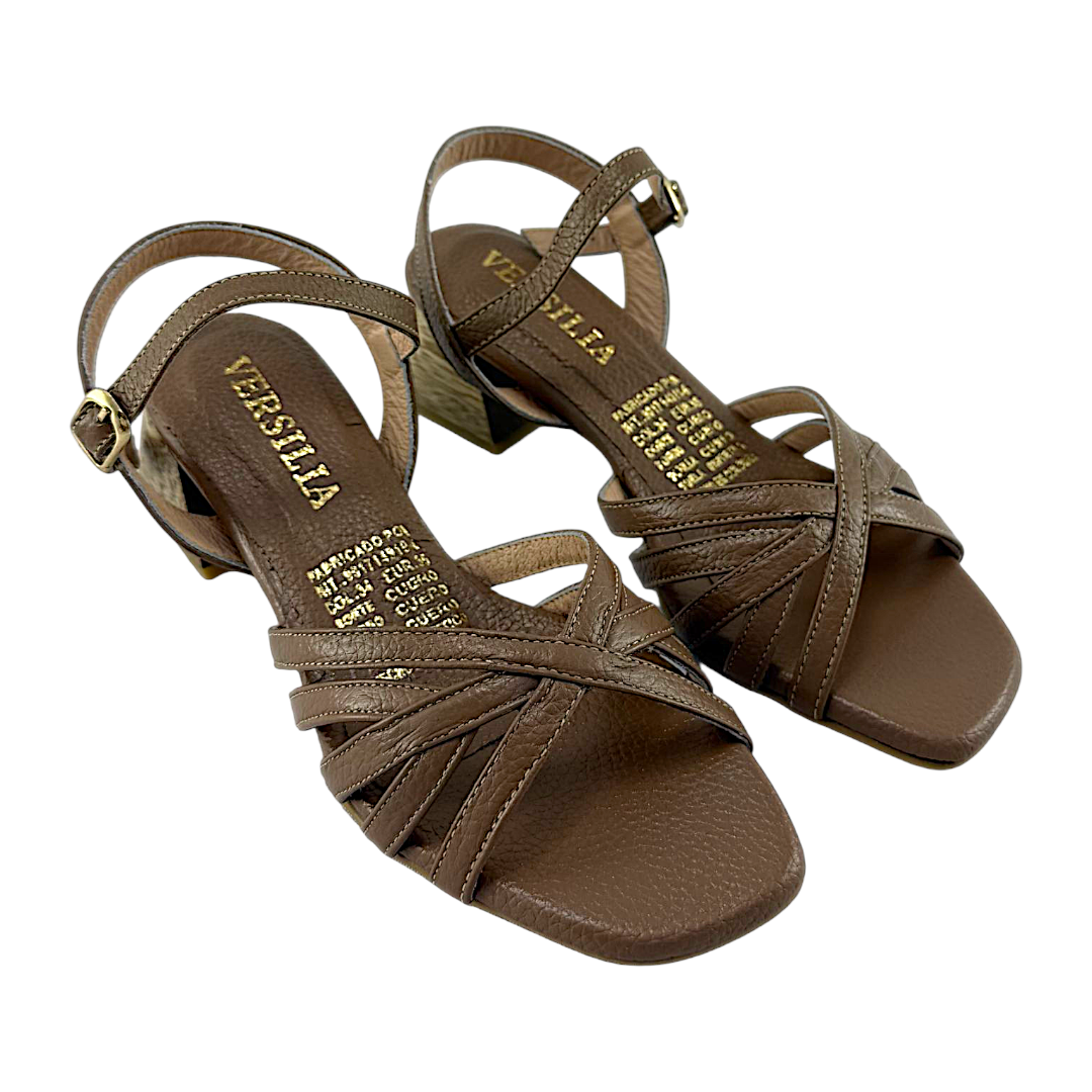 Tacón Mujer Versilia Beany capellada de tiras cruzadas y correa talonera ajustable. Ref. 0007439 Disponible en color Nude.