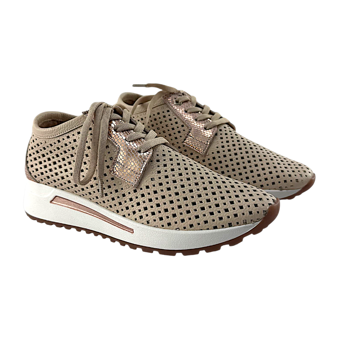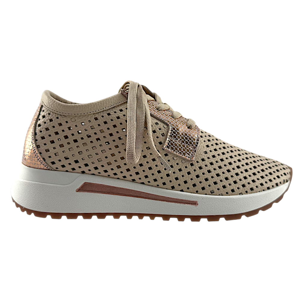 Tennis Mujer Versilia Cindy elaborado en cuero perforado y cordones ajustables. Ref. 0004925. Disponible en colores Nude.