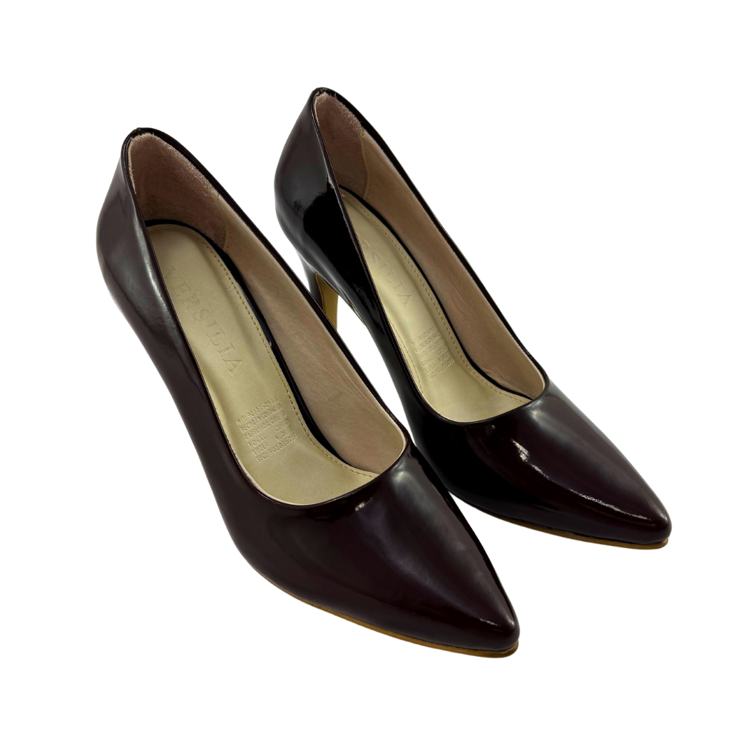 Tacón Alto Mujer Versilia Valentina elaborado en cuero diseño estileto cerrado puntudo. Ref. 0007071 Disponible en color Chocolate.