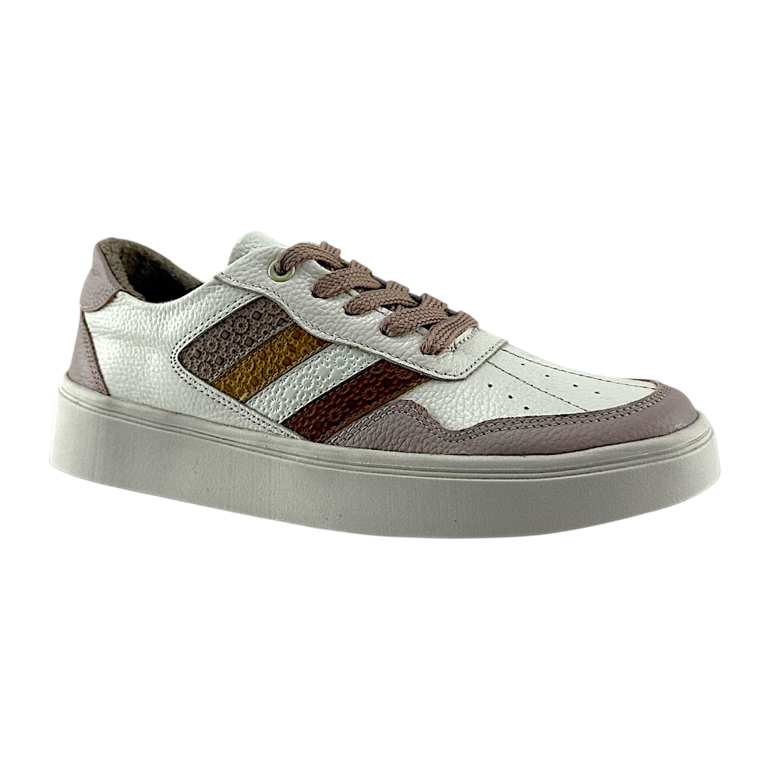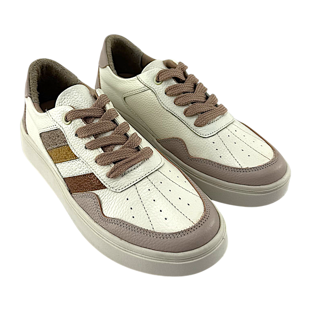 Tenis Mujer Versilia Varsovia Elaborado en cuero en combinación de texturas y con cordones ajustables. Ref. 0007080 Disponible en color Nude.