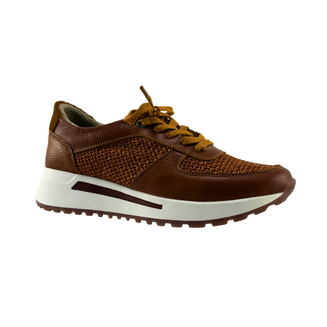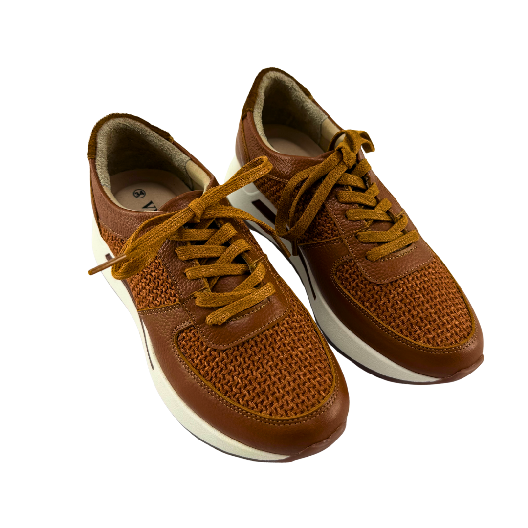 Tenis Mujer Versilia Zagreb Elaborado en cuero en combinación de texturas y cordones ajustables. Ref. 0007084 Disponible en color Miel.
